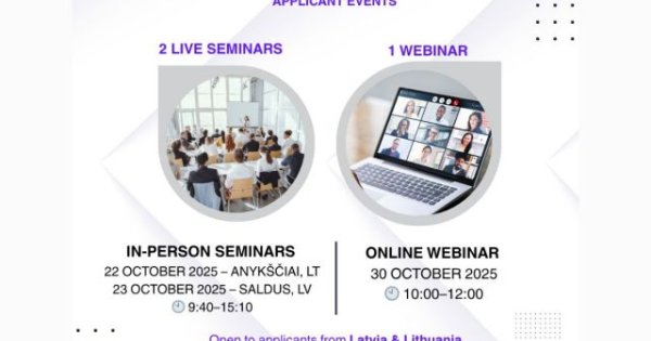 1. Semināri klātienē angļu valodā (Informācija par atbalstāmajām aktivitātēm, iedvesmai un partneru meklēšanai)