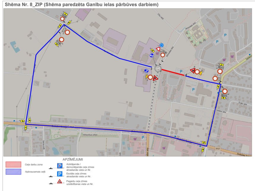 Ceturtdien slēgs Ganību ielas posmu; satiksmi organizēs pa apvedceļiem