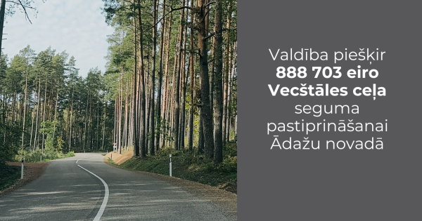 Otrdien, 21. oktobrī, Ministru kabinets apstiprināja 888 703 eiro piešķiršanu Ādažu novada pašvaldībai no Aizsardzības ministrijas budžeta. Finansējums paredzēts Vecštāles ceļa seguma pastiprināšanai, lai to varētu droši izmantot smagie transportlīdzekļi, kuru kopējā masa pārsniedz 18 tonnas.