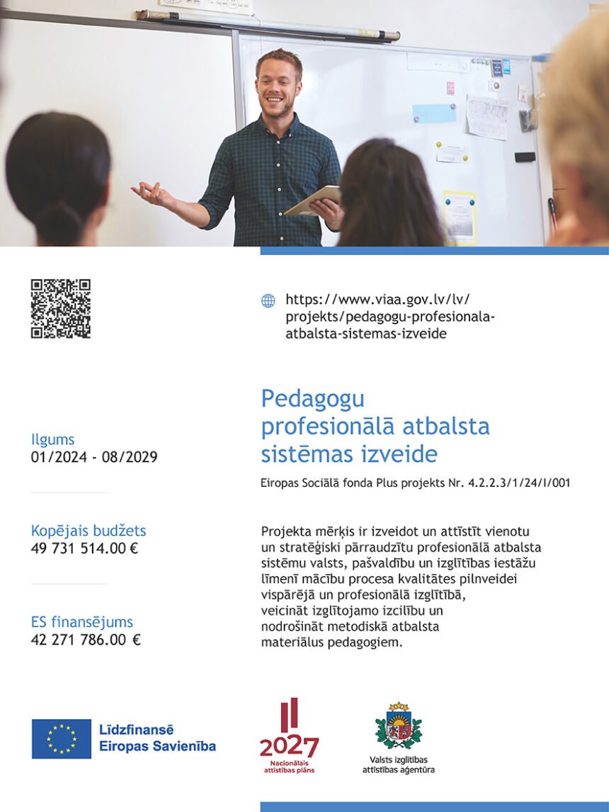 Projekta mērķis ir izveidot un attīstīt vienotu un stratēģiski pārraudzītu profesionālā atbalsta sistēmu valsts, pašvaldību un izglītības iestāžu līmenī mācību procesa kvalitātes pilnveidei vispārējā un profesionālā izglītībā, veicināt izglītojamo izcilību un nodrošināt metodiskā atbalsta materiālus pedagogiem.