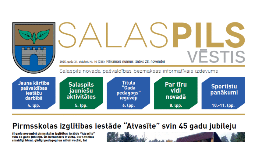 31. oktobrī iznācis Salaspils novada pašvaldības bezmaksas informatīvā laikraksta “Salaspils Vēstis” jaunākais numurs. Laikrakstā lasiet: