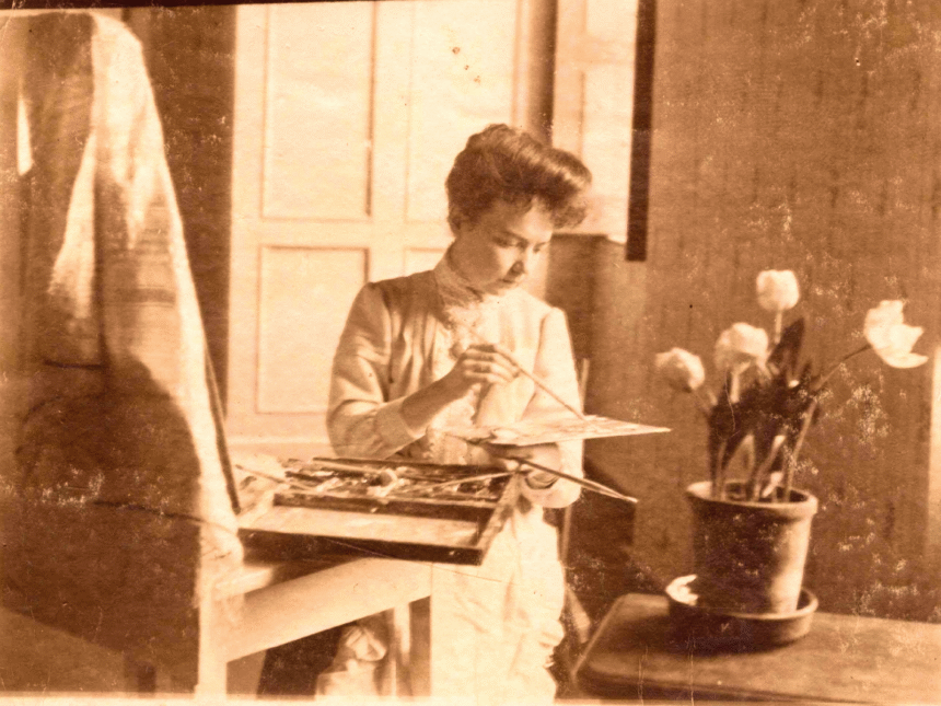 Foto: Gleznojoša sieviete. Nezināma autora fotogrāfija no kāda vācbaltiešu ģimenes albuma. 20. gadsimta sākums. Latvijas Nacionālā bibliotēka, Reto grāmatu un rokrakstu krājums.