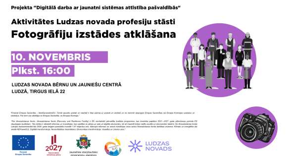 2025. gada 10. novembrī plkst. 16.00 Ludzas Bērnu un jauniešu centrā, Tirgus ielā 22, Ludzā, tiks atklāta izstāde “Ludzas novada profesiju stāsti”, kas tapusi Atveseļošanas fonda investīciju projekta Nr. 2.3.2.1.i.0/1/23/I/CFLA/002 “Digitālā darba ar jaunatni sistēmas attīstība pašvaldībās” ietvaros.