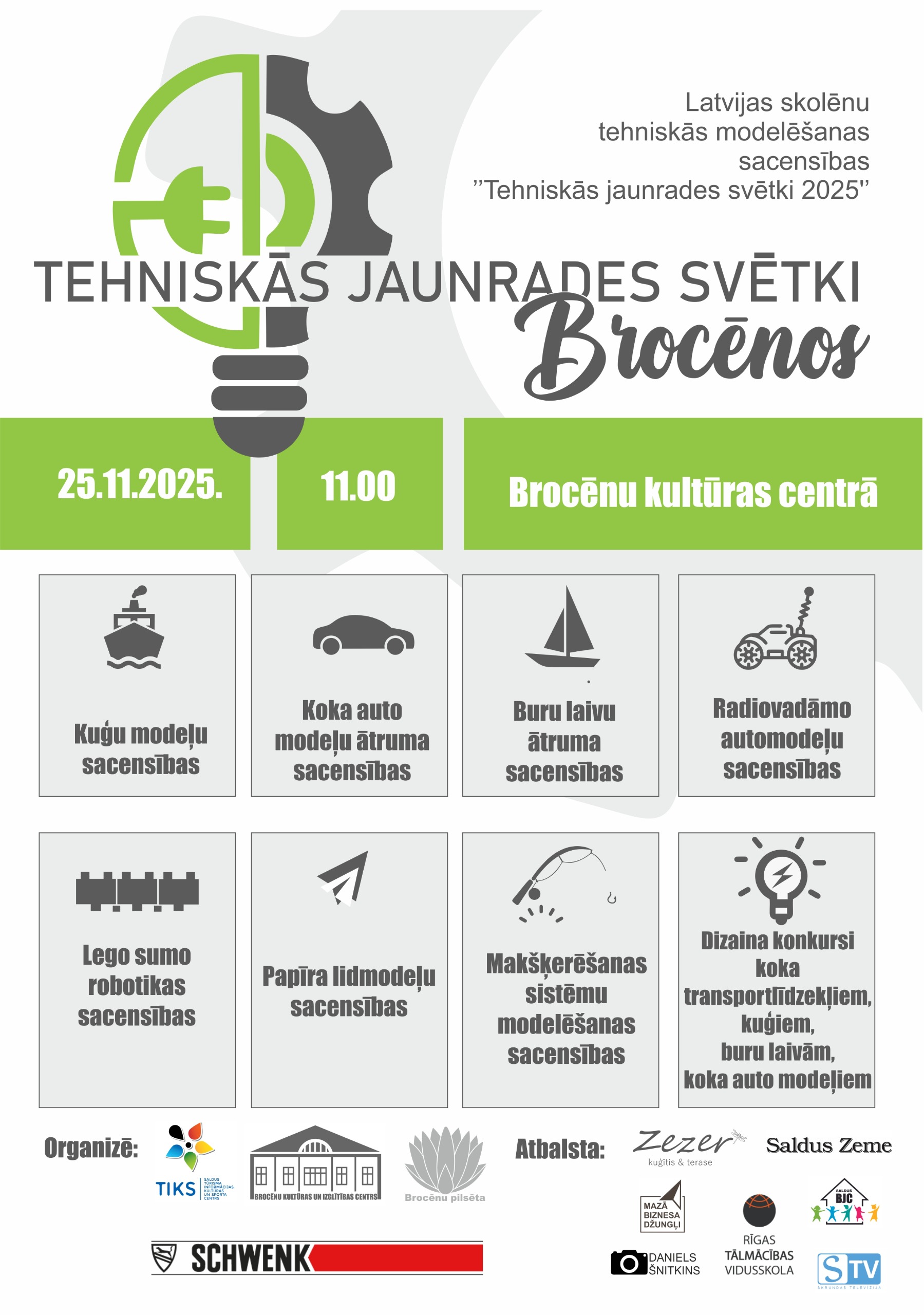 25. novembrī plkst. 11.00 Brocēnu kultūras centrā norisināsies jau piektie Latvijas skolēnu tehniskās modelēšanas sacensības “Tehniskās jaunrades svētki 2025”, kas pulcēs jauniešus no dažādām Latvijas vietām, lai pārbaudītu savas prasmes inženierzinātnēs, dizainā un tehniskajā radošumā.