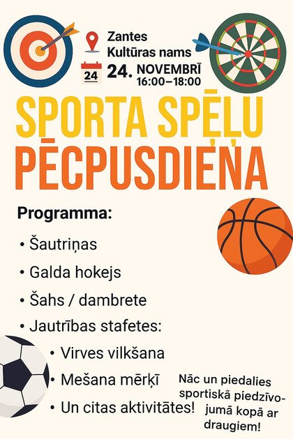 SPORTA SPĒĻU PĒCPUSDIENA! 24.11.2025 16:00