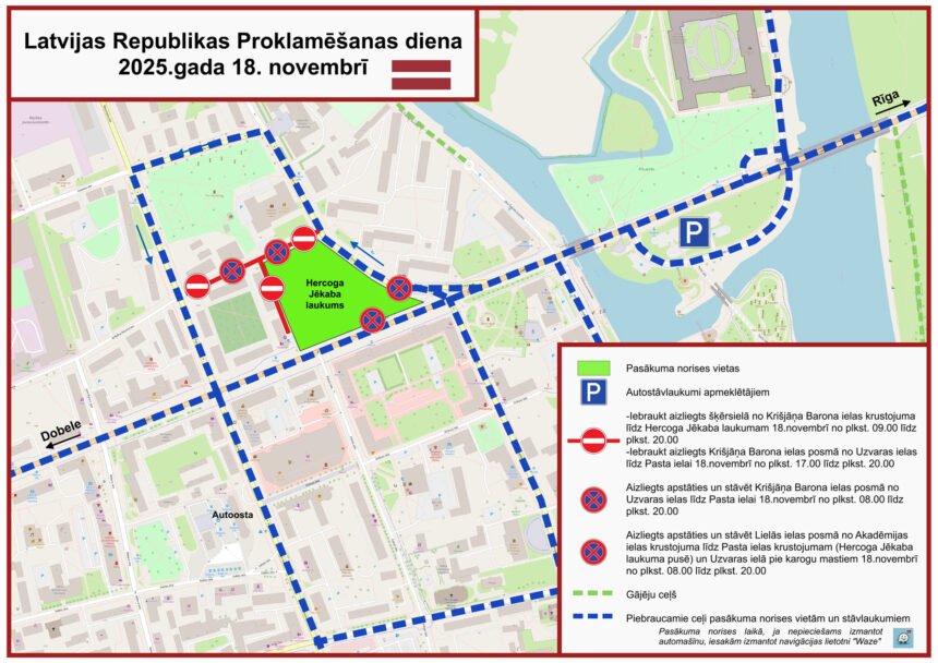 The post 18. novembrī – satiksmes ierobežojumi Hercoga Jēkaba laukuma apkārtnē appeared first on Jelgava.