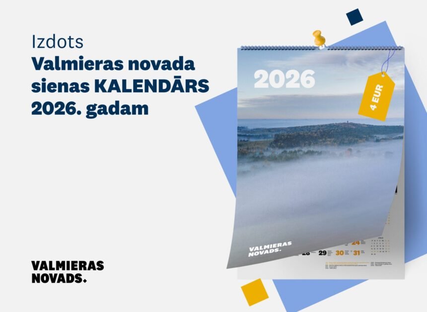 Valmieras novada paÅ”valdÄ«ba izdevusi sienas kalendÄru 2026. gadam. NÄkamÄ gada sienas kalendÄrÄ katru mÄnesi rotÄs lielformÄta fotogrÄfija, kurÄ bÅ«s attÄlota kÄda ainaviska Valmieras novada vieta, tÄ stiprinot pÄrliecÄ«bu, cik skaistÄ, dabiskÄ un daudzveidÄ«gÄ novadÄ mÄs dzÄ«vojam.