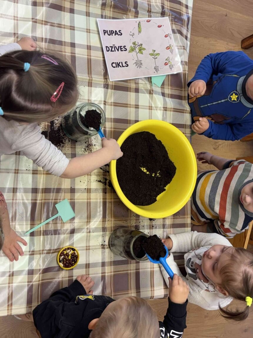 Īpašu prieku bērniem sagādāja eksperiments “Dīgstošā pupiņa”. Bērni iestādīja pupu vai zirni un ik dienu vēroja, kā tā uzbriest, dīgst, izdzen saknītes un lapas. Šis dabas process viņiem bija liels atklājums, pašu acīm redzēt, kā no mazas sēkliņas rodas jauna dzīvība.