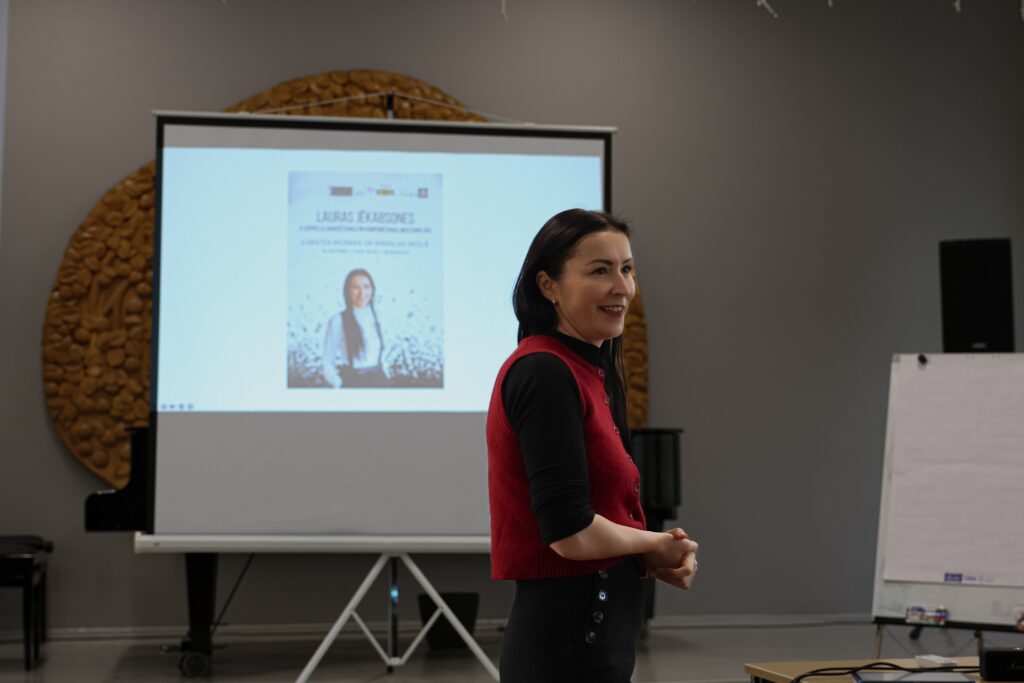 Vislielāko atsaucību guva projekta trešā aktivitāte – komponistes Lauras Jēkabsones a capella aranžēšanas un kompozīcijas meistarklase – , kas notika Ilūkstes MMS 14. oktobrī. Meistarklasē pulcējās Sēlijas un Latgales mūziķi, mūzikas pedagogi, koru un ansambļu vadītāji. Meistarklases mērķis ir iepazīstināt dalībniekus ar šī brīža aktualitātēm pasaules a cappella mūzikas rakstībā, kā arī rosināt rakstīt un aranžēt pašiem, tādā veidā radot jaunu repertuāru. Dalībnieki apguva dažādas tēmas, piemēram, kas ir radošums un kā tas mūs ietekmē; skice; slāņošanas tehnika; “Kopēšanas” un klausīšanās tehnika; harmonijas tehnika; digitālie palīgi un modernās tehnoloģijas, kas iedvesmoja un iedrošināja dalībniekus jaunām un radošām idejām. Katrs meistarklases dalībnieks saņēma “Sēļu tautasdziesmu burtnīcas” eksemplāru, kas uzreiz tika izmantota kā tautasdziesmu paraugu avots meistarklases norisēs. Kopīgi izmēģinot kompozīcijas tehnikas, dažas no sēļu tautasdziesmām iemirdzējās jaunā, košā un neparastā skanējumā. Ceram, ka drīz vien sagaidīsim jaunas, daudzveidīgas un interesantas ar Sēlijas novadu saistītas kompozīcijas, ko varēs iekļaut mūzikas kolektīvu repertuārā!