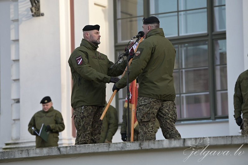 Šodien, 21. novembrī, Jelgavas pils pagalmā notika Zemessardzes 4. Kurzemes brigādes 52. kaujas atbalsta bataljona virsseržanta maiņas ceremonija – Zemessardzes 52. kaujas atbalsta bataljona virsseržanta amatā stājās štāba virsseržants Romāns Jermoļonoks (attēlā no kreisās), nomainot līdzšinējo virsseržantu galveno virsseržantu Ivaru Bernšteinu.