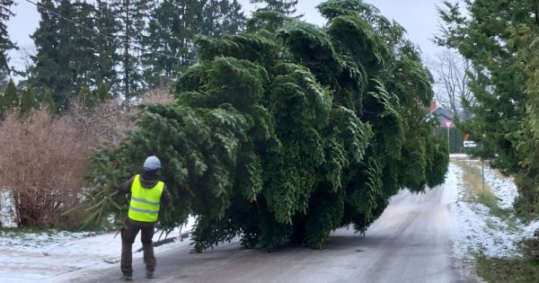 Lai egli varētu droši nogādāt līdz Pilsētas laukumam, Talsu pilsētas pārvalde piesaistīja vietējo uzņēmumu SIA „ERDE VS” no Vandzenes, kas šodien, 25. novembrī, veica egles nozāģēšanu, nostiprināšanu, transportēšanu un uzstādīšanu. Darbs nebija viegls, tāpēc īpašs paldies uzņēmuma vadītājam Viktoram, kurš nebaidās no izaicinājumiem un piekrita uzdevumam, ko uzņēmuma komanda savā praksē veica pirmo reizi. Profesionāli un rūpīgi tika paveikts viss nepieciešamais – tostarp izmanīga manevrēšana pa Talsu pilsētas ielām atpakaļgaitā, lai droši nogādātu egli līdz Talsu Pilsētas laukumam. Kā atzina darbu veicēji, sarežģītākais bijis egles izvešana no privātmājas teritorijas, kur zemajos kabeļos nedrīkstēja aizķerties tās kuplie zari.
