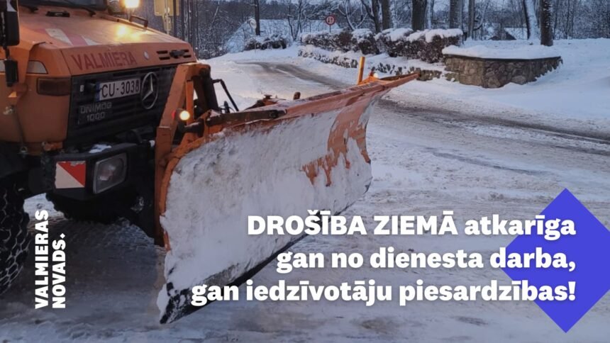 Valmieras novada pašvaldības ielu un autoceļu tīklā uzsākta ziemas uzturēšanas sezona, taču aicinām autovadītājus pielāgot braukšanas paradumus ziemas apstākļiem, braukt uzmanīgi un ievērot drošu distanci!