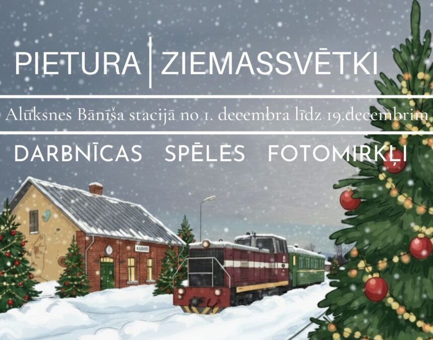 Tikai reizi gadā – decembrī ekspozīcija “Alūksnes Bānīša stacija” (Jāņkalna iela 52) pārtop par Ziemassvētku pieturu, kurā arī tu vari piestāt un no 1. līdz 19.decembra piedalīties nodarbībā “Pietura: Ziemassvētki”, kurā ceļojums uz svētkiem notiks ar radošām darbnīcām un jautrām aktivitātes. Pieteikšanās pa tālruni 25669604.
