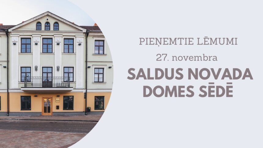 2025. gada 27. novembrī notika kārtējā Saldus novada domes sēde, kurā tika izskatīti 34 lēmumprojekti un pieņemti vairāki būtiski lēmumi, kas skar sportu, izglītību, pašvaldības pārvaldību, infrastruktūru un teritorijas attīstību.