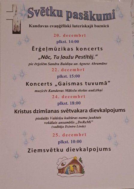 Kristus dzimšanas svētvakara dievkalpojums. Piedalās Valdeķu kultūras nama jauktais vokālais ansamblis “DoReMi”