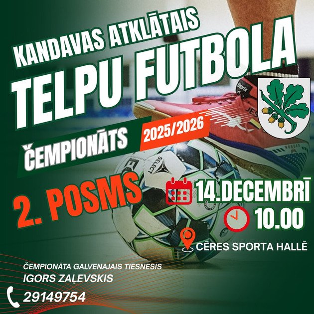 Kandavas atklātais telpu futbola čempionāts 14.12.2025 10:00