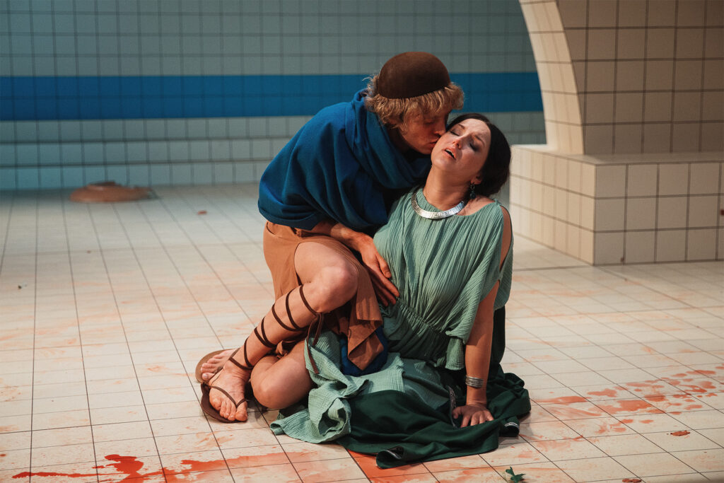 Režisors Reinis Suhanovs vairāk nekā 2000 gadu seno mītu par sievieti, kura atstājusi visu – dzimteni un mājas –, lai kopā ar vīru būvētu viņu kopdzīves templi, risinās, uzdodot smagus un eksistenciālas dabas jautājumus: ko darīt ar aizdegušos, nekontrolētu kaislību, kas parauj līdzi ģimenes templi; vai liesmu turēt ciet, ja tu dedz; vai nodotajai Mēdejai aizvainojumā ir tiesības uzcelto visšaušalīgākajā veidā noārdīt līdz pamatiem.