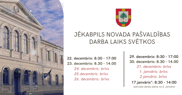 Jēkabpils novada pašvaldības darba laika izmaiņas svētku laikā!