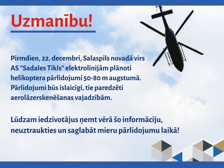 22. decembrī plānoti helikoptera pārlidojumi Salaspils novadā