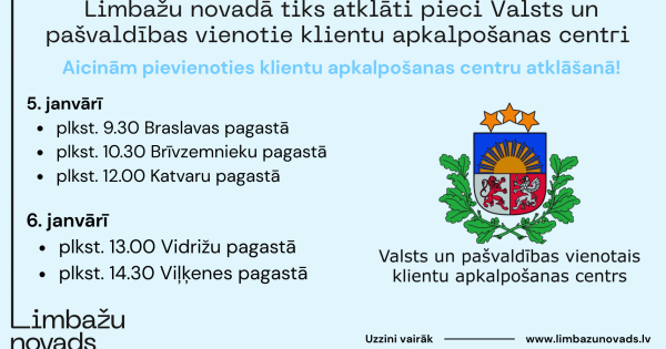 Lai iedzīvotājiem nodrošinātu ērtāku piekļuvi valsts un pašvaldību pakalpojumiem, 2026. gada janvārī Limbažu novadā svinīgi tiks atklāti pieci jauni Valsts un pašvaldības vienotie klientu apkalpošanas centri (VPVKAC):