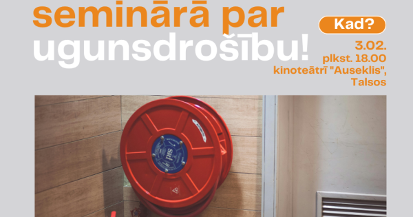 Lai izglītotu iedzīvotājus par ugunsdrošību un civilo aizsardzību, SIA „Talsu namsaimnieks” ikvienu aicina piedalīties seminārā.