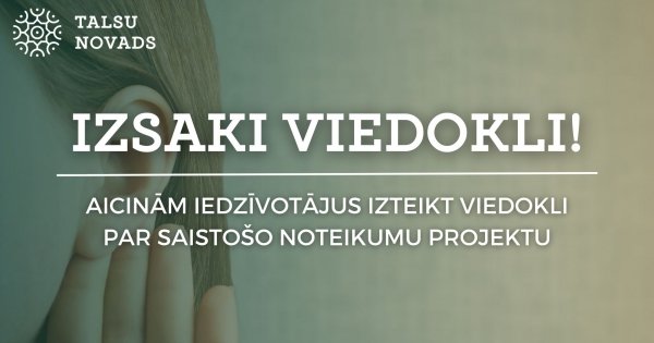 Talsu novada pašvaldība līdz 2026. gada 29. janvārim aicina iedzīvotājus izteikt viedokli par saistošo noteikumu projektu „Talsu novada jauniešu iniciatīvas projektu konkursa organizēšanas kārtība”, kas nosaka kārtību, kādā pašvaldība organizē jauniešu iniciatīvas projektu konkursu, piešķir finansējumu projektu īstenošanai un definē prasības konkursa pretendentiem.