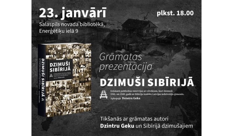 Salaspils novada bibliotēka 23. janvārī plkst. 18:00 aicina ikvienu uz tikšanos ar režisori un grāmatu autori Dzintru Geku-Vasku un grāmatas “Dzimuši Sibīrijā” prezentāciju. Pasākumu atbalsta Salaspils novada pašvaldība.