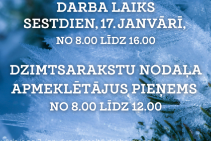 Darba laiks pārceltajā darba dienā sestdienā, 17. janvārī