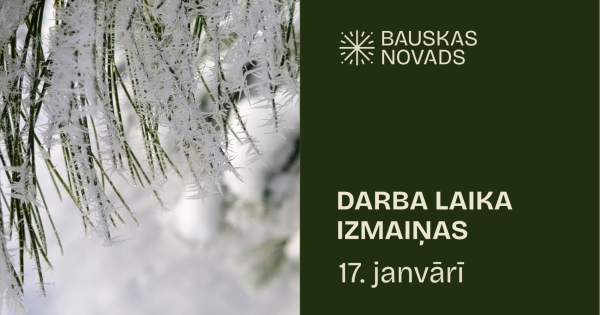 Ar Ministru kabineta 2025. gada 12. jūnija rīkojuma Nr. 330 “Par darba dienu pārcelšanu 2026. gadā” noteikts pārcelt darba dienu no piektdienas, 2026. gada 2. janvāra, uz sestdienu, 2026. gada 17. janvāri, tāpēc informējam par izmaiņām pašvaldības administrācijas un iestāžu darba laikā: