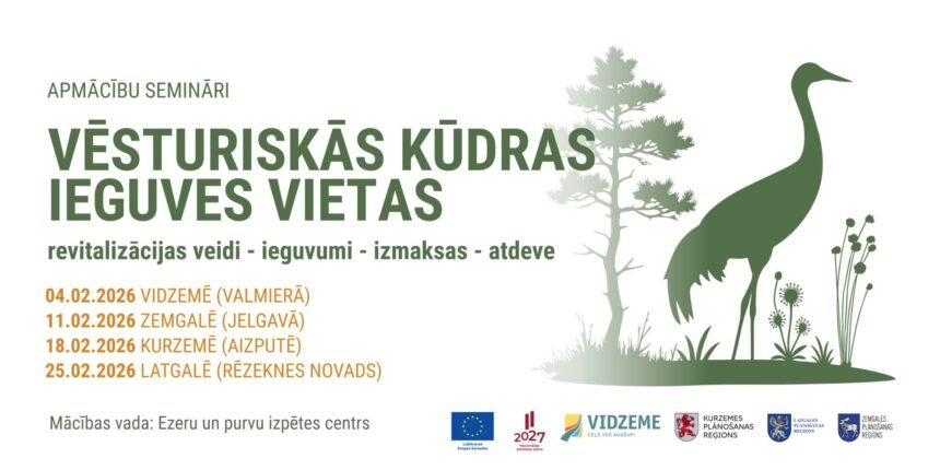 2026. gada februārī četros Latvijas plānošanas reģionos norisināsies apmācību semināru cikls “Vēsturiskās kūdras ieguves vietas: revitalizācijas veidi – ieguvumi – izmaksas – atdeve”, kas veltīts degradētu kūdras ieguves teritoriju ilgtspējīgai apsaimniekošanai un turpmākai izmantošanai. Semināri paredzēti pašvaldību speciālistiem un nozares profesionāļiem, kuru ikdienas darbs saistīts ar lēmumu pieņemšanu par teritoriju attīstību, klimata ietekmes mazināšanu un investīciju piesaisti, kā arī zemju īpašniekiem, kuru īpašumā atrodas vēsturiskās kūdras ieguves vietas un kuri interesējas par šo teritoriju efektīvu izmantošanu nākotnē.