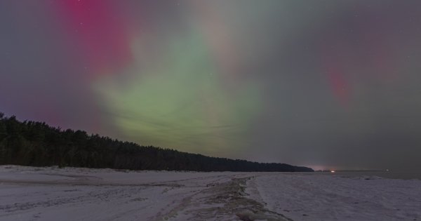 Šonakt vairāku stundu garumā virs Jūrmalas debesīm bija vērojama neparasti spilgta ziemeļblāzma. Debesis iekrāsojās intensīvos zaļos, rozā un sarkanīgos toņos, veidojot lēni plūstošus gaismas viļņus.
