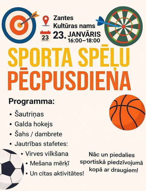 SPORTA SPĒĻU PĒCPUSDIENA 23.01.2026 16:00