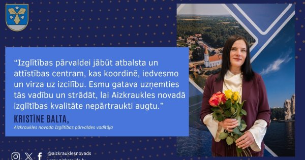 “Treškārt ‒ veidot kvalitatīvu un iekļaujošu izglītību kā novada attīstības pamatu. Sadarbība ar universitātēm, pētniecībā balstīta pieeja un modernu mācību metožu attīstīšana ir jomas, kurās varu dot reālu pienesumu, jo šīs sadarbības jau šobrīd ir daļa no manas profesionālās ikdienas. Tāpat uzskatu, ka iekļaujoša izglītība un vecāku iesaiste ir neatņemama kvalitatīvas sistēmas sastāvdaļa. Man ir praktiska pieredze darbā ar vecāku kopienām, kā arī pētījumi šajā jomā, un esmu pārliecināta, ka arī Aizkraukles novadā šo potenciālu var attīstīt vēl mērķtiecīgāk. Uzskatu, ka Izglītības pārvaldei jābūt atbalsta un attīstības centram ‒ vietai, kas koordinē, iedvesmo un virza uz izcilību. Esmu gatava uzņemties šo atbildību un strādāt, lai Aizkraukles novads kļūtu par vidi, kurā skolēni, pedagogi un ģimenes jūtas atbalstītas, bet izglītības kvalitāte nepārtraukti augtu,” saka Kristīne Balta.