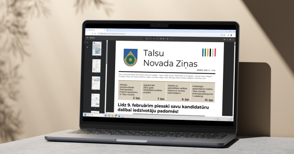 Piesakies pašvaldības informatīvā izdevuma „Talsu Novada Ziņas” saņemšanai e-pastā. Tas ir ērts veids, kā regulāri sekot līdzi aktuālajai informācijai par notikumiem, lēmumiem, projektiem un norisēm Talsu novadā.