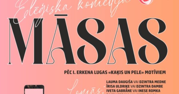 Stāmerienas pilī, piektdienās vakarā, 20.februārī pl.18:30 viesosies CĒSU TEĀTRIS ar izrādi MĀSAS, kas ir elēģiska komēdija, veidota pēc ungāru dramaturga I.Erkens lugas “Kaķis un peles” motīviem.