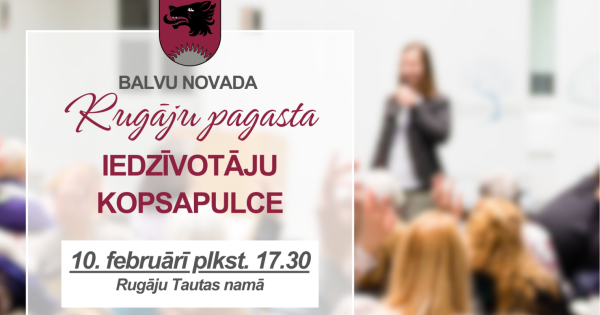 Rugāju apvienības pārvalde aicina Rugāju pagasta iedzīvotājus uz iedzīvotāju kopsapulci, kas notiks 10. februārī plkst. 17.30 Rugāju Tautas namā.