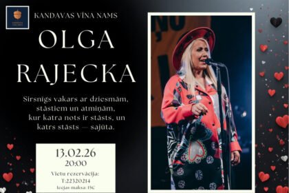 Kandavas vīna namā viesosies Olga Rajecka 13.02.2026 20:00