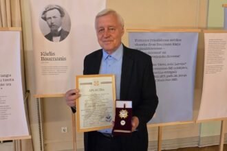 SvinÄ«gā ceremonijā RÄ«gas LatvieÅ”u biedrÄ«bas namā diriÄ£entam Jēkabam Ozoliņam pasniegta Latvijas valsts aizsardzÄ«bas fonda ā€œLāčplēsisā€ Goda zÄ«me. Apbalvojums…