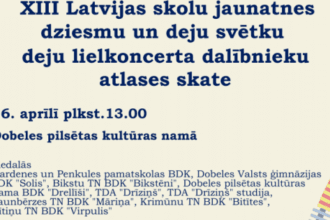 16. aprÄ«lÄ« plkst.13.00 Dobeles pilsÄtas KultÅ«ras namÄ norisinÄsies Dobeles novada deju kolektÄ«vu atlases skate dalÄ«baiĀ XIII Latvijas Skolu…