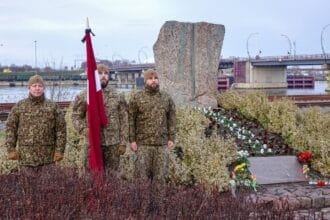Å odien, 24. februÄrÄ«, Saldus novada domes priekÅ”sÄdÄtÄja vietniece izglÄ«tÄ«bas, sociÄlajÄ un kultÅ«ras jomÄ Inta Vanaga nolika ziedus pie…
