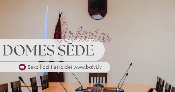 Balvu novada pašvaldības domes priekšsēdētājs Jānis Trupovnieks sasauc ārkārtas domes sēdi 2026. gada 29. janvārī plkst. 15.00, Bērzpils ielā 1A, Balvos (3.stāvā, sēžu zālē). Darba kārtībā: Par grozījumu Balvu novada domes 2025. gada 25.…