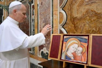 Latvijas nacionÄlÄ Jubilejas gada svÄtceļojuma laikÄ 24. novembrÄ« pÄvests Leons XIV pasvÄtÄ«ja Laba Padoma DievmÄtes fresku, kura tapa…