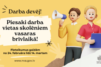 Darba devÄji, kuri vasaras brÄ«vlaikÄ darbinieku rindÄs uzÅems skolÄnus, sniedzot iespÄju apgÅ«t darba prasmes, aicinÄti pieteikt darba vietas.…