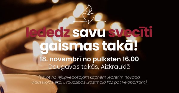 18. novembrÄ« pulksten 16.00 par godu Latvijas 107. dzimÅ”anas dienai Aizkraukles iedzÄ«votÄji un viesi aicinÄti iesaistÄ«ties gaismas ceļa veidoÅ”anÄ pastaigu takÄ āDaugavas takasā. LÄ«dz ar tumsas iestÄÅ”anos dosimies uz pastaigu…