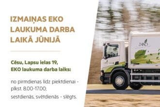 Remontdarbu dÄļ jÅ«nijÄ CÄsu EKO laukums bÅ«s atvÄrts tikai darbadienÄs ā no pirmdienas lÄ«dz piektdienai, darba laikÄ no…