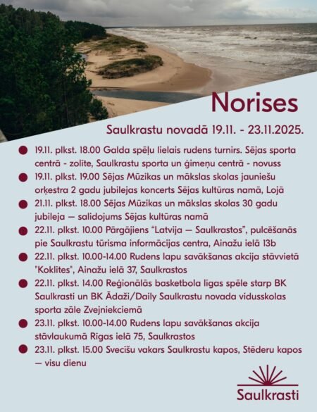Norises Saulkrastu novadÄ (19.11.-23.11.2025.) | Saulkrastu novada paÅ”valdÄ«bas mÄjas lapa XLai Ŕī…
