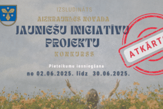 Projektu pieteikumu iesniegÅ”anas termiÅÅ” pagarinÄts lÄ«dz 16. jÅ«nijam. Projektu konkursa mÄrÄ·is ir veicinÄt jaunieÅ”u lÄ«dzdalÄ«bu sev svarÄ«gu jautÄjumu…