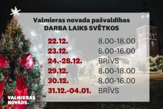 SIA “VTU Valmiera” informē par izmaiņām Ziemassvētku un Jaungada sagaidīšanas laikā, kā arī skolēnu ziemas brīvlaikā. Valmieras pilsētas…