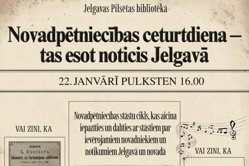 Pilsētas bibliotēka piedāvā jaunu novadpētniecības sarunu ciklu par to, kas noticis Jelgavā;…