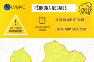 BrÄ«dina par pÄrkona negaisu Latvijas Vides Ä£eoloÄ£ijas un meteoroloÄ£ijas centrs treÅ”dien, 23. jÅ«lijÄ, izsludinÄjis dzelteno pÄrkona negaisa brÄ«dinÄjumu.…